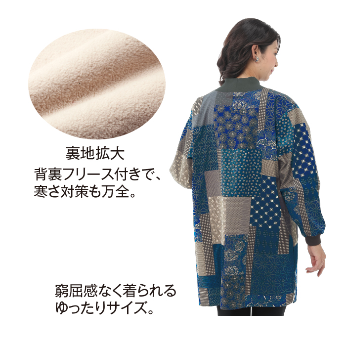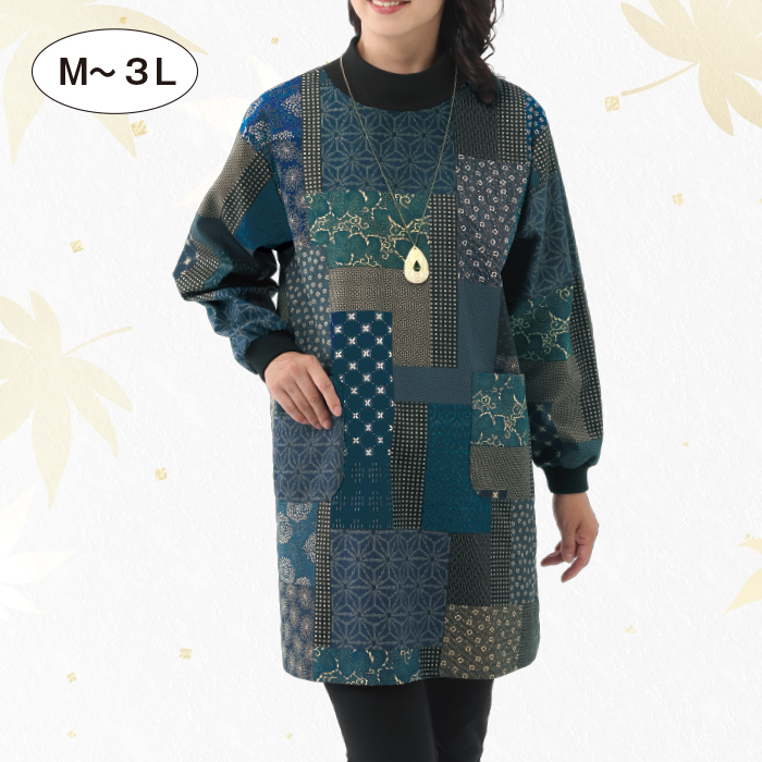 パッチワーク風の和柄が上品なチュニック。
