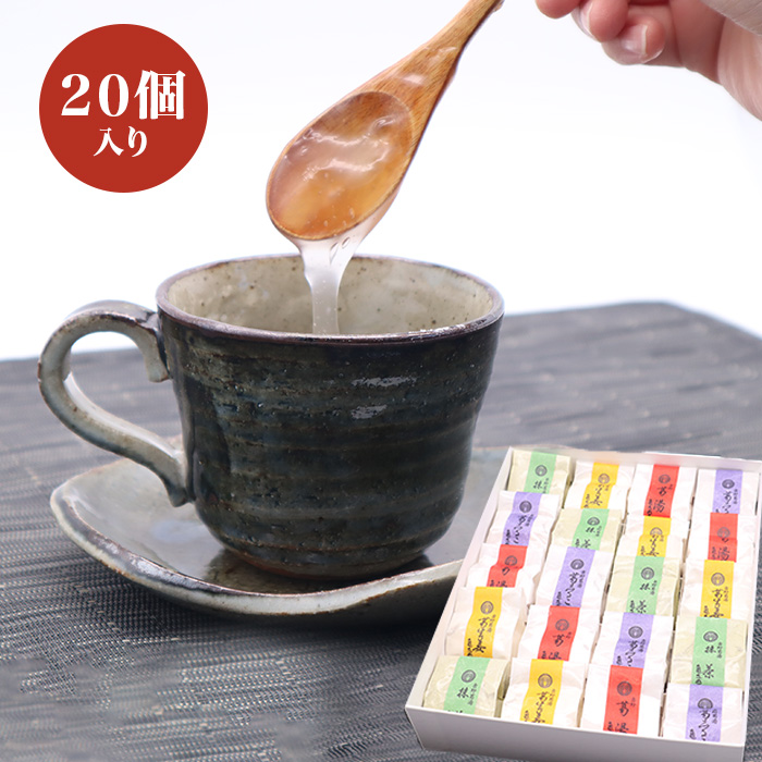 プレーン・しるこ・しょうが・抹茶味の4種の味のアソート20個入りギフト