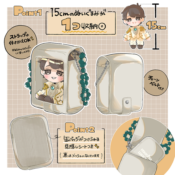 ■セット内容本体、チェーンベルト、目隠しシート ■サイズ(約)10×16×マチ8cm チェーンベルト長さ:25cm(フック含まず)■重量約140g■材質本体:合成皮革(ポリウレタン樹脂) 窓:ポリウレタン樹脂■チェーンベルト:スチール ■仕様チェーンベルト取り外し可■生産国中国■注意事項日光や蛍光灯に長時間あてると変色する場合があります。