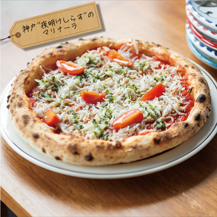神戸夜明けしらすのマリナーラ/ひょうご海苔の漁師風ロマニスタピザ/神戸産天然真ダコのピザ/播州百日鶏のピッツァ・ナターレ/ダブルチーズ マルゲリータ×各1枚(合計5枚)、温め方ガイドブック