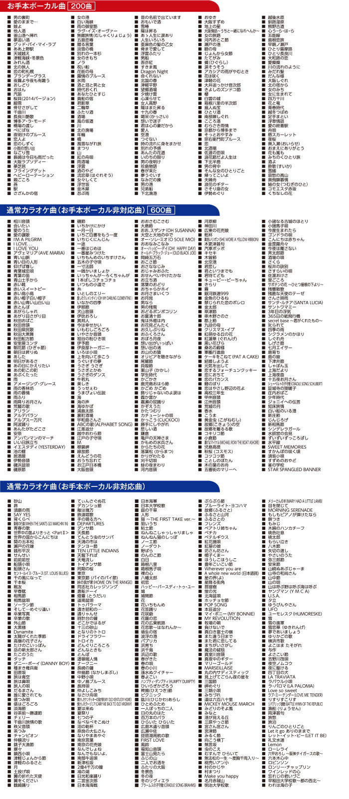 ・内蔵曲:全800曲(通常カラオケ曲:内蔵曲のうちの600曲・お手本曲:内蔵曲のうちの200曲)