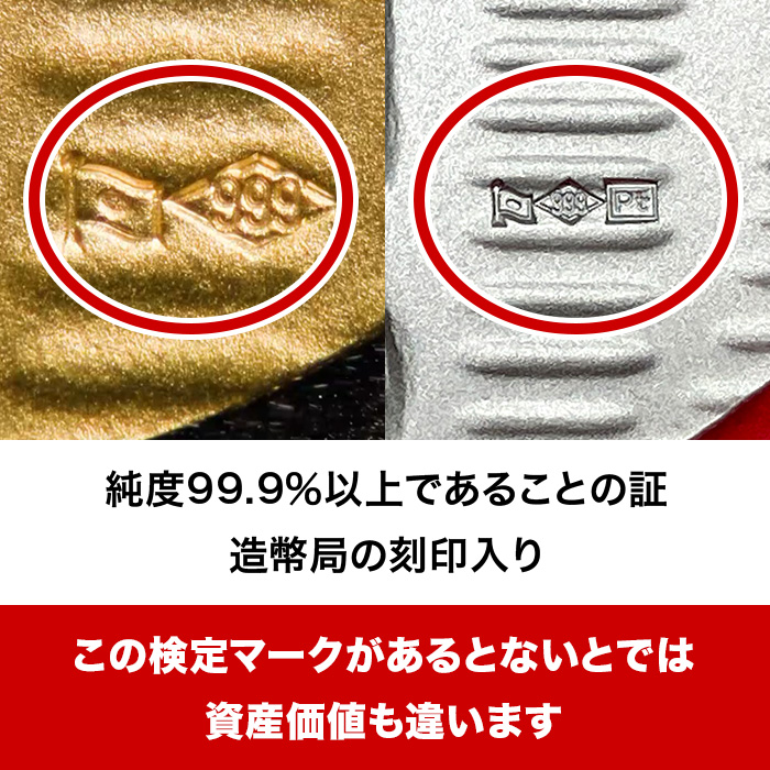 小判×2(純金・純プラチナ×各1枚)、品質保証書×2、額縁×1、銀製干支根付(午)×2